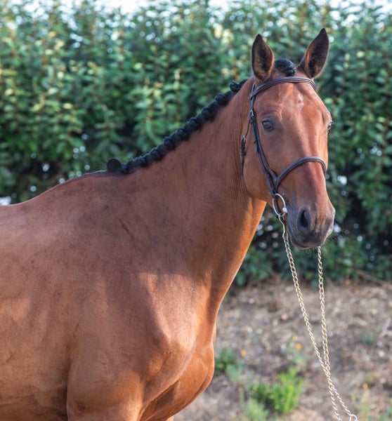 Duc des Chênes Z, potro de 5 años. Altura: 1,73 m. Origenes: Daganix / Dominator / Cor de la Bruyère. Caballo con gran potencial, Duc es potente y tiene una mentalidad de guerrero. Nada lo detiene. Una inteligencia excepcional en la barra. Sale al exterior sin problema, solo o acompañado. Se transporta bien. Duc está listo para una temporada como semental de 6 años en doma clásica. 24 radiografías + visita veterinaria realizada en agosto, revisadas por 3 veterinarios. Apto para deporte. Al día en todo: osteópata, vacunas, desparasitaciones. Para jinetes profesionales o amateurs muy experimentados. Solo venta a profesionales, no a amateurs. Precio: 26.000 euros, sin IVA. Se puede ver en Brunembert (62). Solo personas interesadas, únicamente por teléfono. Gracias.