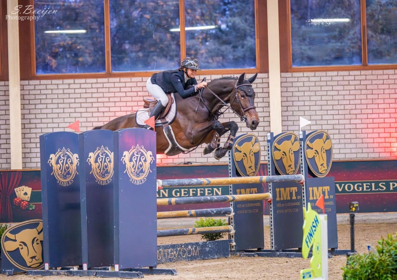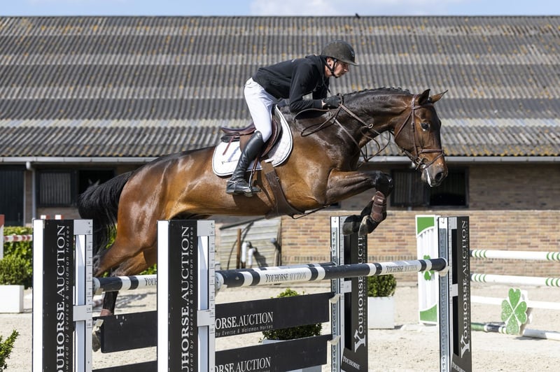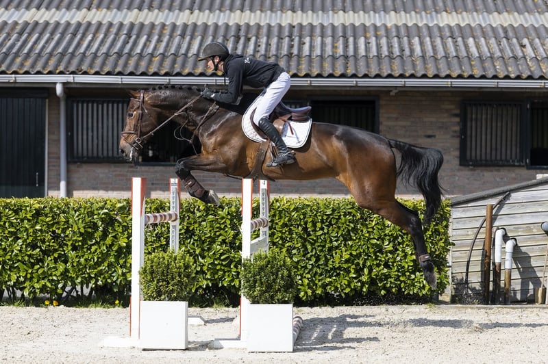 Very attractive type, loose in the body. Jumps with a lot of quality and a good ‘go’ to the jump. Light-footed and quick off the ground, currently at 1.10m level. Well-behaved and friendly horse, careful and alert, with good manners. Very interesting horse. Sire Dominator 2000 Z competed at 1.70m level and belongs to the absolute top of showjumping. He is a son of Diamant de Semilly (1.60m) and is known for passing on extreme scope, reflexes and attitude. His offspring perform at the highest level worldwide. Dam The dam Avril competed at 1.30m level and brings proven jumping genes through Indorado and Corrado I. Damline The damline is strong and reliable. From the second dam Korette (Voltaire) come multiple sport horses, including Thank You at 1.40m level. Furthermore, we see several horses at 1.30m–1.40m level in the line. The line shows a consistent production of sport horses with quality and attitude.