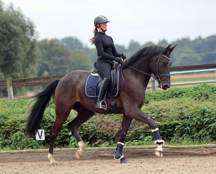 Handsome 5-year-old gelding with a special start in life. This tall, athletic sport horse by Caruso de Trebox out of a Dr. Doolittle (Donnerhall) mare was gently backed at the age of four and has already been placed in young horse classes. Despite his height of 17.5 hands, he has a compact, well-structured build and is easy and light to ride. In daily handling and under saddle, he proves to be straightforward, eager to learn, and always striving to do his best for his rider. We see this elegant dark bay as a fantastic amateur horse; with proper training, he also has the potential for the big arena. He spent his early months in the "Thüringeti," a wild horse project in Thuringia. There, he grew up in a herd in the wild natural environment without human influence. This unique beginning is still evident today in his calm demeanor, robustness, and uncomplicated nature. X-rays are available. A wonderful horse for the future! https://youtube.com/shorts/ilwylRtd_Y4?si=1WVlpTB2yWWq9pWr