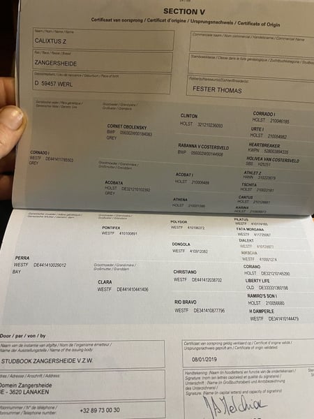 ☎️WhatsApp +48 608535734 CALIXTUS F Zangersheide gelding by CORNADO NRW (Marcus Ehning) x PONTIFEX Born 2018 • 169 cm Comes from a very good sport horse family. He has competed in Germany in young horse competitions up to 105 cm – due to two pregnancies of the former owner, his sporting career has been developed more slowly. Jumping, talented, with potential for further sport. Requires a confident rider with established skills. Easy to handle on a daily basis and trouble-free in the herd. Full set of X-ray images available. Videos: Competitions: https://youtube.com/shorts/pcSgnpSpA9U?si=FLJWJrlEbmgq0Mwf https://youtube.com/shorts/o9yx1sK4fUc?si=rtu-Mby6PsCP5KYR https://youtube.com/shorts/Y3OqV5lAk1s?si=NlIRM7uT_kbeEcG1 Flatwork: https://youtu.be/sKZKwSYcQpM?si=dMSDnNbHrF8KRJJZ Jumping at home: https://youtu.be/sjv7z1XJb0s?si=LsCQ6wLMAWJhvQYN Contact WhatsApp: +48 608 535 734