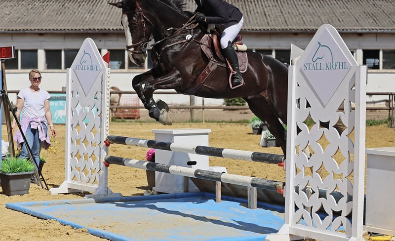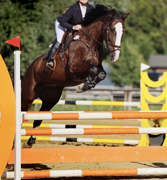 Brave and reliable offspring of D'Aganix 2000 Z. This gelding brings plenty of courage and go to the jump. He is absolutely reliable, clearing every obstacle without hesitation. He has achieved A- and L-level show jumping placements and has recently been introduced at M level. He provides the rider with a sense of security and, despite his motivation in the arena, remains a very calm and relaxed horse in handling. He can be ridden alone confidently at competitions, loads calmly onto the trailer, and, unlike many young horses, remains perfectly well-behaved in any new situation, regardless of how loud and colorful the environment is around him. Visually, he is a real eye-catcher with his striking blaze and powerful appearance, reminiscent of his grandsire Dominator. He is familiar with the lunging aid, can go alone in the terrain, stands quietly at the blacksmith, and is compatible with other horses.