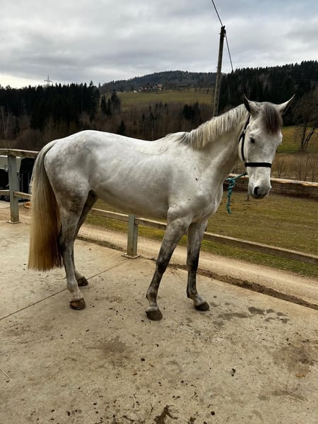 Beautiful Grey Gelding – Zangersheider Bloodline For sale is an elegant Zangersheider gelding, born in 2017. Standing at an impressive 16.1 hh, he is a real eye-catcher. The horse is listed as a companion animal due to a shoulder injury. He impresses with his friendly and sensitive nature, as well as his human-oriented demeanor. Due to a shoulder injury that required surgery and physiotherapy, he is no longer rideable. He spends his days in the pasture, playing with his friends. At night, he is stabled in his box. He does not require any medication. Please contact me if interested. Ideal for riders seeking a reliable and charming leisure horse. I am happy to provide further information and arrange a viewing or trial ride.