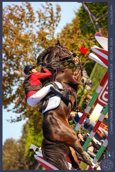EXCEPCIONAL Para competiciones Pro 140 y superiores Monta Zangersheide nacido en 2017, de color castaño oscuro, 1,77 m. Por Gino H (medio hermano del gran Hickstead por la madre, padre Calvino Z) y Kiss me van't Prinsenveld por Beaulieu's Think Big. Un caballo extraordinario, con belleza, fuerza, equilibrio, ternura, todo ello con finura y ligereza. Se maneja con un ligero toque de la yema del dedo en montañas. Está entrenado "a la mano", y en los obstáculos resulta sorprendentemente fácil; en doma, un verdadero placer. Acostumbrado a salir solo o en grupo en exteriores. Puede ser montado en 130 con cabestro, realizar movimientos de doma de nivel élite amateur en cuerda, e incluso galopar con un niño de 3 años a la espalda. En resumen, una verdadera unicornio. En cuanto a rendimiento, ha realizado unas cincuenta vueltas en 120-125-130 cm. Por lo tanto, ya está "rodado". Gana en GP 130 y frecuentemente termina sin falta, a veces con 4 puntos debido a que la amazona es principiante en este nivel de salto. Listo inmediatamente para 135/140. Una mentalidad de oro. Ideal para jinetes que deseen divertirse en pruebas de alto nivel o profesionales que busquen resultados en categorías superiores. Un caballo excepcional que SOLO partirá con un/a jinete/a excepcional. Visible en Pau (64).