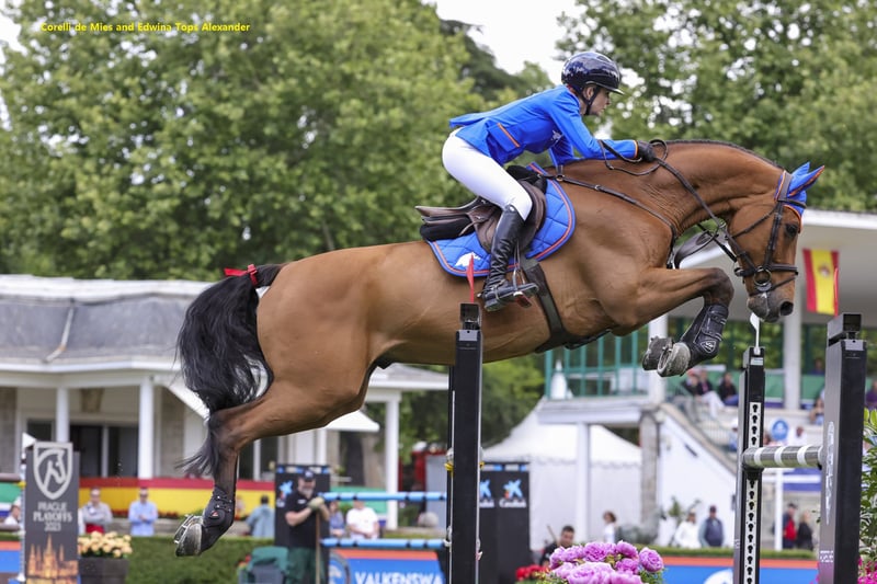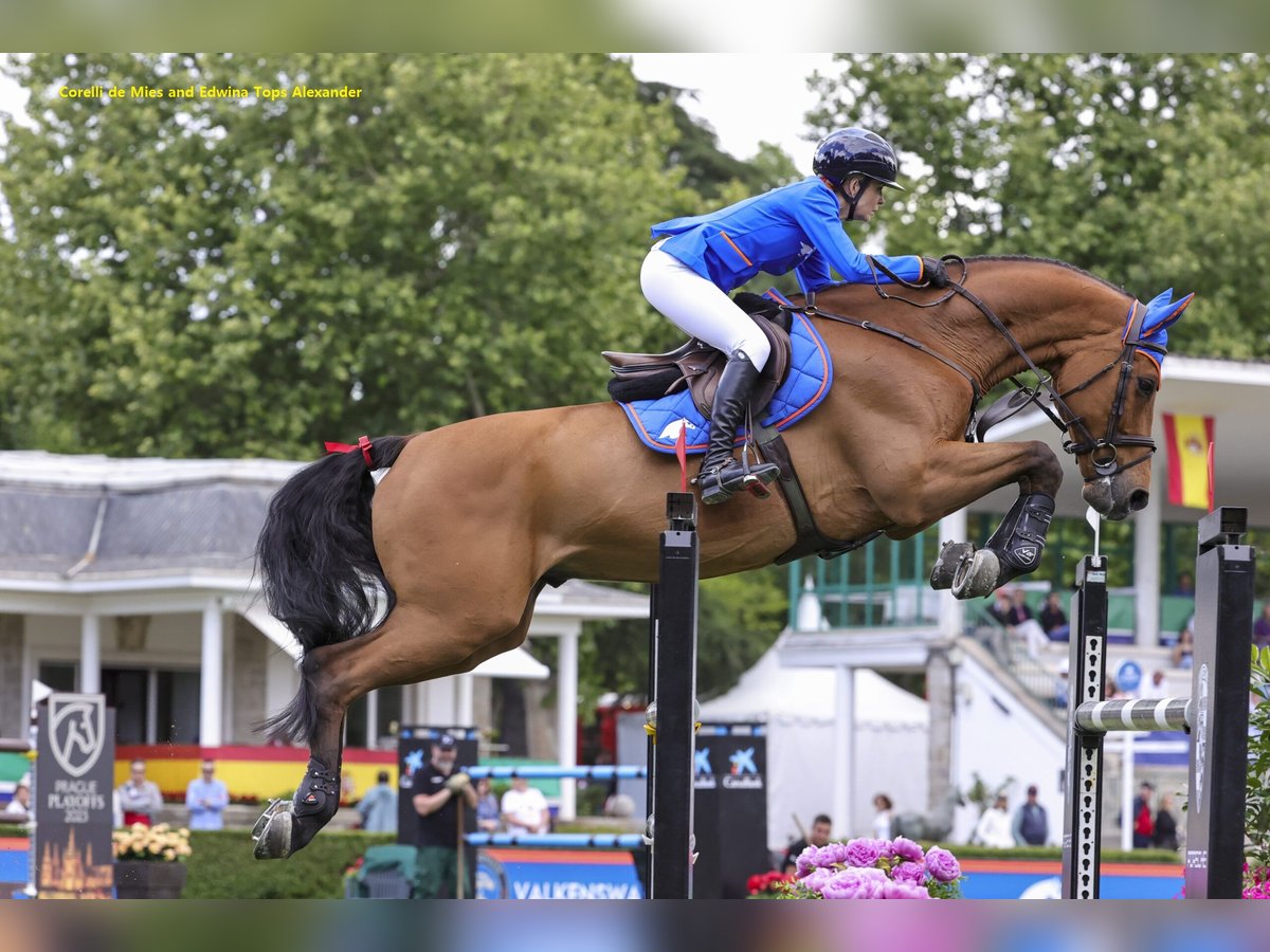 Coco de Mies (van Centauer Z) is een uitzonderlijke fokmerrie die twee paarden van wereldklasse heeft voortgebracht: Corelli de Mies en Tiffany de Olid. Corelli de Mies (van Calvaro) werd goedgekeurd door het Zangersheide Stamboek en viel op in het CSI4*-circuit met Nisse Lüneburg. Hij won vervolgens de CSI4* 1,55 m Grand Prix voordat hij met Edwina Tops-Alexander deelnam aan de CSI5* 1,60 m tijdens de Global Champions Tour. Met een totaal aan prijzengeld van € 195.000 heeft hij bewezen een topsporter te zijn. Een andere ster nakomeling van Coco de Mies is Tiffany de Olid (van Huppydam des Horts). Ze begon haar carrière op 1,45 m met Manuel Fernández Saro en klom vervolgens op naar het hoogste niveau met Samuel Parot. Ze heeft meer dan € 166.000 verdiend en talrijke klasseringen behaald op 1,60 m, waaronder een belangrijke overwinning in de CSI4* 1,55 m Grand Prix in Guadalajara, Mexico. Voordat ze de wereld van de topsport betrad, bracht Tiffany de Olid een merrieveulen van Arko III voort, genaamd Yira de Olid, die nu als negenjarige op 1,45 m niveau concurreert. Colunga de Mies is niet alleen opmerkelijk door de prestaties van haar dochter, maar ook door haar eigen nakomelingen. Troya de Olid (van Centauer Z) is een competitieve merrie op de CSI3- en CSI4-circuits op 1,50 m** met de Egyptische ruiter Zain Shady Samir. Haar zus, Colombine de Mies (van Carrera VDL), presteert op slechts achtjarige leeftijd succesvol op 1,40 meter onder Marie Pellegrin. Colunga de Mies komt uit een uitzonderlijke groep broers en zussen. Haar volle broer, Cascaro (Cassini I), sprong op 1,60 m* CSIO5-niveau met Anna Markel en vertegenwoordigde Oostenrijk in de Nations Cups in St. Gallen, Samorin en Sopot. Con Cap (van Con Air) is een goedgekeurde DWB-hengst in Denemarken. Landsdream 2 (van Landos) presteerde consistent op 1,40 m in CSI2*- en CSI3*-evenementen. - Clintofino (van Clinton I) sprong op CSI3*-niveau (1,50 m) met Shane Breen. Zijn volle broer, Clintfino (ook van Clinton I), is een topsporter voor Elian Baumann en Zwitserland en nam deel aan CSIO5*-evenementen (1,55 m) in Leipzig, Genève, Barcelona, Sopot en St. Gallen. Deze moederlijn geeft onmiskenbaar sportieve kwaliteiten door. Exportstatus: Europa - het is niet mogelijk om het embryo te exporteren buiten Europa. Transportkosten zijn voor rekening van de koper.