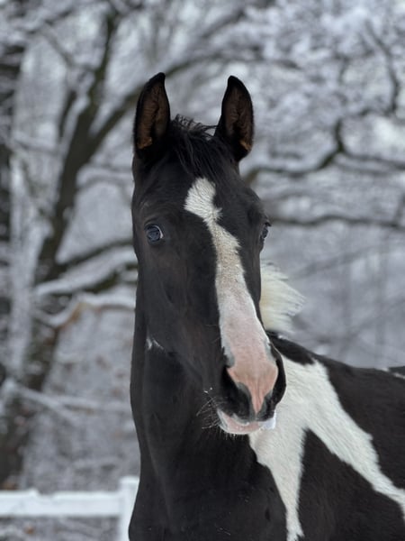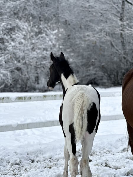 M-Locarno è un stallone di razza Zangersheide nato il 19 maggio 2025, di colore carico-sorretto. È figlio di M-Hidalgo, un stallone KWPN, e della fattrice Gazela, figlia di Igor. Lostallone ha un carattere davvero fenomenale. È un puledro molto coraggioso, abituato a vivere vicino a una strada nazionale, quindi nessun veicolo, motore, tir o sirene lo impressionano. Viene portato al pascolo ogni giorno e cresce in un branco. Possiede un’enorme energia, ma allo stesso tempo è molto attento alle persone. Collabora con entusiasmo e segue il conduttore con curiosità in ambienti sconosciuti. È fiducioso e non si impressiona né con il montaggio né con lo svestimento del bridon, né con il lavoro al guinzaglio. Si lascia mettere tutte le zampe e ha già ricevuto addestramento di base. Adora essere spazzolato e la presenza umana.