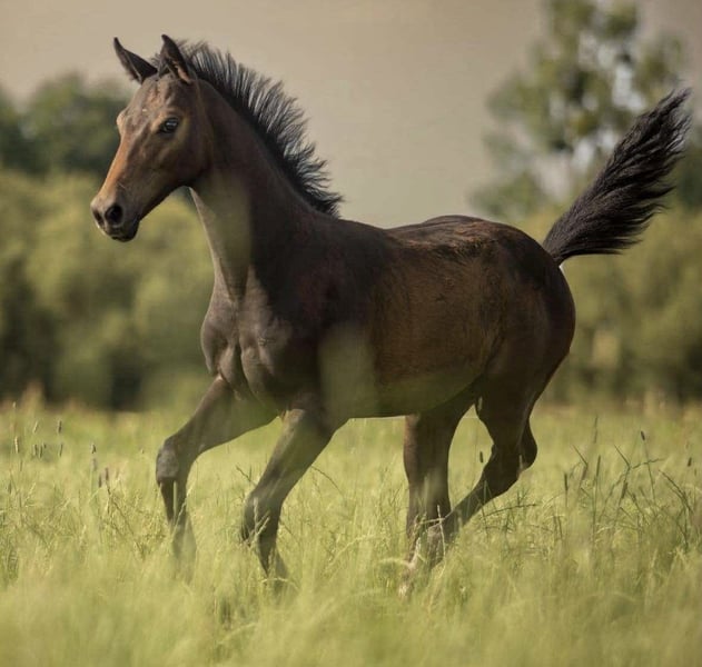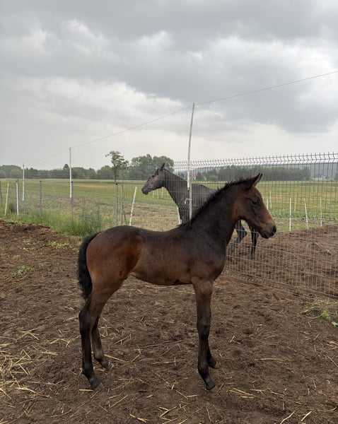That One Night WD Z verspricht ein großes Pferd zu werden (über 170 cm). Er ist ein sehr mutiges Fohlen, das sich gern an Menschen klammert – obwohl er auch mal Grenzen austesten kann. Er wächst in einer Herde mit einem gleichaltrigen Gefährten auf, lebt in Freilaufhaltung mit Zugang zu einem Stall, in dem er gern schläft, und lässt sich problemlos einsperren, wenn ein anderes Pferd in der Nähe ist. Er ist sehr gut gebaut, kräftig und hat wunderschöne Bewegungen. Er wird regelmäßig beschlagen, geimpft, mit hochwertigem Futter und Ergänzungsfuttermitteln aufgezogen und hat während der Saison ständigen Zugang zu Heu und saftigen Weiden. Er ist ein sehr gut versorgtes Fohlen. Abstammung: Sein Vater ist der Hengst Toémme de Regor Z., ein Sohn des legendären Chacco-Blue und der hoch angesehenen Stute Centa de Muze. Toémme hat eine exzellente Abstammung und enormes Potenzial – er ist ein junger Hengst, der bereits jetzt sein sportliches Talent eindrucksvoll unter Beweis stellt. Letztes Jahr gewann er die Prüfung für 6-Jährige in Brüssel und dieses Jahr die für 7-Jährige in Münster. Die Mutter von That One Night, Drama Queen (aus der Koliadka), ist eine junge Stute, die noch nicht geritten wird. Sie ist eine sehr kräftige und charakterstarke Stute, furchtlos und hat diese Eigenschaften an ihr Fohlen weitergegeben. Auch ihre Abstammung ist erstklassig: Ihr Vater, Caramo Lansing (Koramo), ist ein Hengst mit Erfolgen im 160-cm-Grand-Prix. Dramas Mutter ist die Tochter von Rallie des Etoiles San Gabriel, die ebenfalls erfolgreich im 160-cm-Grand-Prix startete. Die letzten Fotos zeigen seine Eltern. That One Night sucht ein neues Zuhause. Nur in den besten Händen, vorzugsweise bei Menschen, die das Potenzial dieses exzellenten Pferdes voll ausschöpfen können.