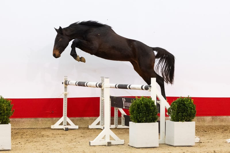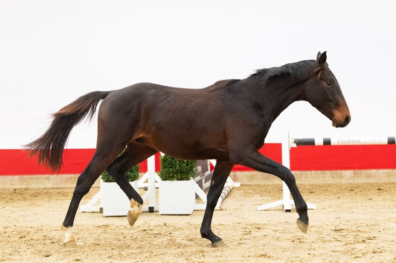 Happily selected: Dontharsio de la Herbougere Z, a two-year-old, very complete horse to look at. He has a very good canter, is light-footed and nicely uphill-built. Sire Donthargos is an Oldenburg premium stallion with an interesting pedigree: Don Diarado (1.70m GP) x Conthargos x Lordanos. He is seven years old and has already competed at international 1.30m level with Karl Brocks (GER). Dam Fantasia du Mont Z is a buckskin mare by the 1.50m level showjumping stallion Felton du Mont (Clinton). Granddam Karola du Rouet is a pinto mare by Baloubet jr (1.55m Grand Prix). She produced an international 1.30m level showjumping horse and is a half-sister to the pinto stallion Clochard (1.40m level).