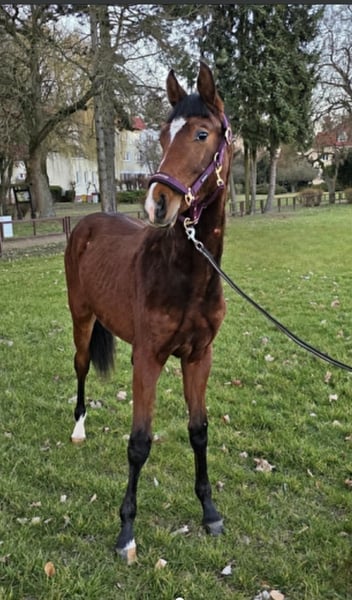 For sale is an exceptional young stallion with an excellent pedigree and great potential for high-level sport. Breed: Zangersheide (Z) Date of Birth: May 2024 (currently 1 year and 8 months old) Color: Bay with some markings Expected Height: 16.1 – 16.2 hh Sire: Odyssee Van De Hoef HS (by OD Highlight Blue / Cornet Obolensky) – son of the legendary Cornet, carrying the genes of top-class show jumpers. Dam: Henna (by Hanin / Grand Master) – a mare with a strong build and very good movement. This young stallion features a modern conformation and outstanding movement. He moves with great grace, lightness, and natural balance. He has a very friendly personality, is eager to work with humans, and learns quickly. An ideal candidate for an ambitious sport horse after gelding. The horse is very well-mannered for his age: - Handles all legs without issue. - Moves correctly on the lead. - Calm and patient during grooming and farrier visits. IMPORTANT! The young stallion is bilaterally inguinal. Surgical castration at a veterinary clinic is necessary, which will incur additional costs for the buyer. He is not suitable for breeding. In his box, he exhibits a pica habit. On pasture or in an open system, he completely ceases this behavior. All faults considered, the price is 25,000 PLN negotiable.