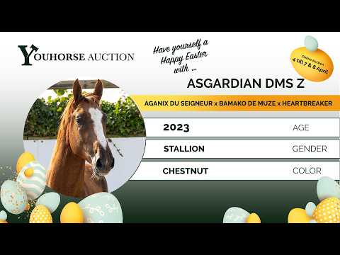 Asgardian DMS Z is een langgelijnd paard en een echte powerhouse. Hij laat duidelijk veel van zijn vader Aganix zien en valt op door zijn vermogen en uitstraling. Hij springt met veel kracht en gemak, toont goed overzicht op de sprong en weet precies waar de paal ligt. Daarbij laat hij fijn bloed zien en een meewerkend karakter. Hij beschikt over een grote galop en beweegt lichtvoetig, wat hem zeer geschikt maakt voor het hogere werk in de toekomst. Alles wijst erop dat dit een paard is voor de grotere parcoursen. Naar onze mening een zeer interessant en compleet paard met veel toekomst. Vader Aganix du Seigneur sprong op 1.60m niveau en behoort tot de absolute topverervers, met nakomelingen als Ambassador Z, Akarad Hero Z en Andiamix II Hero Z op topniveau. Moeder Belize van de Drie Eiken is een dochter van Bamako de Muze (1.60m) en komt uit een uitzonderlijk sterke prestatielijn. De moederlijn is van het allerhoogste niveau en levert structureel toppaarden: Grand Cru van de Rozenberg – 1.60m/1.65m, winnaar op 5* niveau Quebec van de Rozenberg – 1.50m Silhouet van de Rozenberg – 1.45m Qamacho Dennehoeve Z – 1.50m Een stam die zich keer op keer bewijst op het hoogste niveau.