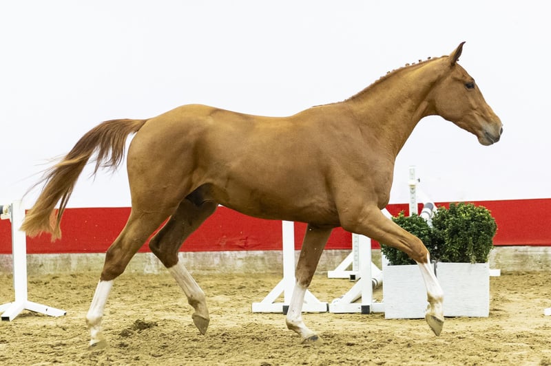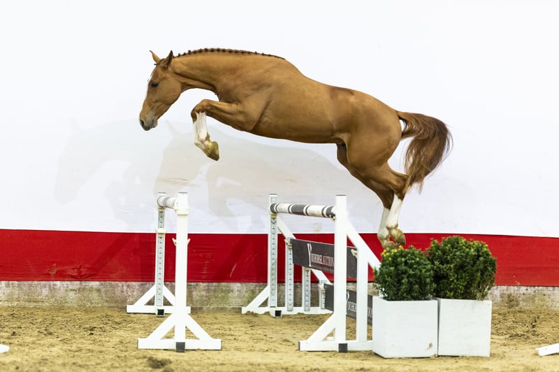 A beautiful chestnut with presence. A true powerhouse showing scope combined with a calm character. He easily jumps a bigger fence and demonstrates that power and attitude go hand in hand. A horse with natural strength and good overview over the fences. Sire Orak d’Hamwyck (1.60m) is by Scuderia 1918 Tobago Z (1.70m) out of a Toulon damline. Orak competes at 1.60m level with placings including CSI5*-W Bordeaux and CSI3* 1.55m Cabourg. Tobago Z is a proven 1.70m Grand Prix performer. Dam For Fun (by For Pleasure 1.60m) comes from the exceptional T&L family, producing multiple 1.45m–1.60m international performers. Second dam Tsarina (by Corofino I 1.60m) produced several 1.60m horses including Just A Gamble (1.60m winner CSI4* Wellington), Houston (1.60m CSI5*) and Pegasus Deau Re Mi (1.60m CSI4*). A damline consistently producing at 1.45m–1.60m level.