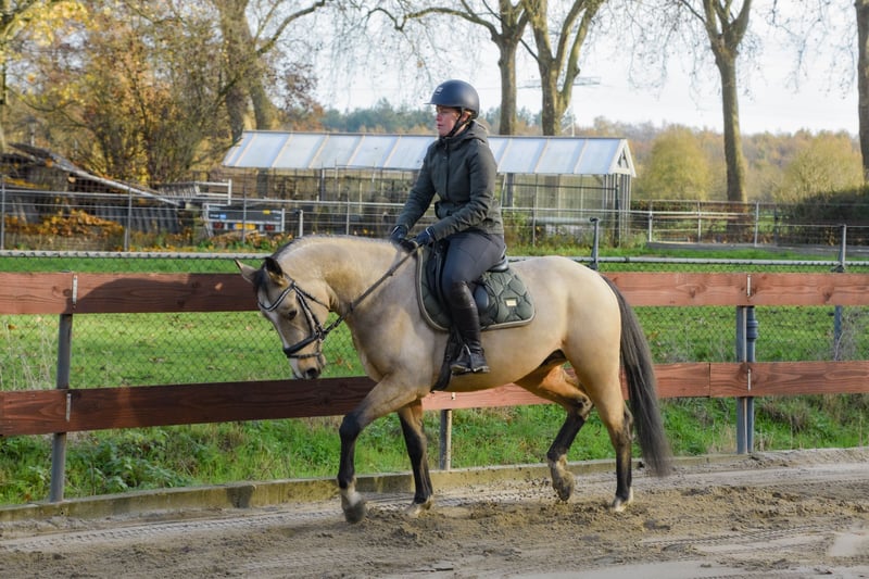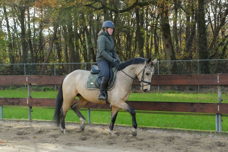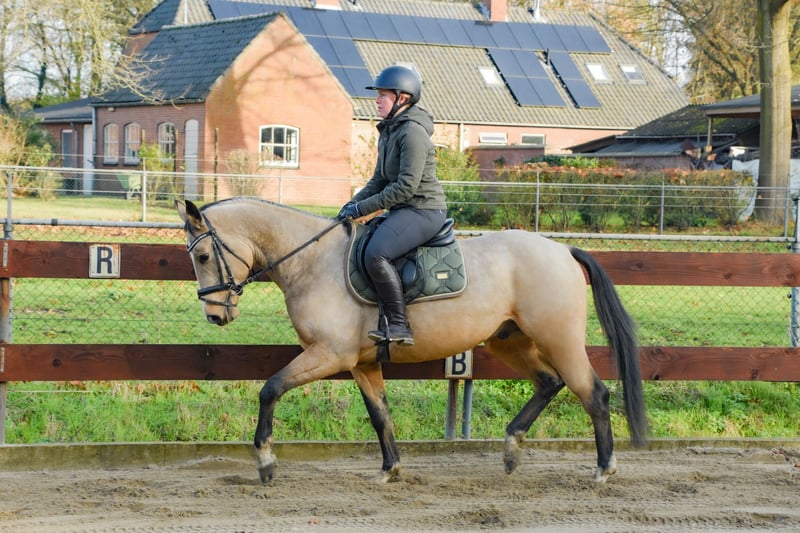 FEI PROSPECT / APPROVED LICENSED STALLION! ⭐️ Heros is a rising 4 years old approved (licensed) stallion / stud for breeding (and also sport), who measures 1.52m. With his beautiful buckskin color, he's a real eye-catcher! He has Zangersheide papers and his pedigree is: Hamlet x No Limit x Joost. His sire is the cremello stallion Hamlet, who is approved by the AES studbook. His dam's sire is the KWPN stallion No Limit, who jumped international at 1.60m level. No Limit has a jumping index of 150 with high reliability, placing him among the top performers. He is also known for his excellent offspring. No Limit is a offspring of the Preferent stallion Indoctro, who became the performance champion as a 3 years old. He also won the IAN Trophy in the 4 years old competition. At the age of 6, he competed in the World Championships for Young Show Jumpers in Lanaken, where he finished 6th. At 8 years old, he was already jumping at the 1.40/1.50m level, winning the Audi Cup and the stallion show jumping competition in Dortmund. Heros's dam line also includes the Holsteiner Preferent stallion Joost, who jumped at 1.50m. As you can see, Heros has a very beautiful and successful bloodline. https://www.horsetelex.nl/horses/pedigree/2630307/heros-by-esclinic-z Heros has incredibly good gaits! In the photos and video, we showed him jumping free for the very first time when he was only 2,5 years old (a year ago), jumping up to 1.20m straight away. He showed a very nice jump with a good back leg technique. We also saw that he really enjoyed jumping! Although he's an incredibly good jumper, we also expect that he will do good in dressage! He's a young, allround pony with plenty of potential. We have high expectations for him! Even though Heros is still young and a stallion, he's incredibly well-behaved and easy to handle and ride! You wouldn't know he's still a stallion at all. He can also stay outside and on the stable next to the mares. He's very sociable with other horses. He’s saddle broken and desides that he also knows how to groom/brush, lift legs, use a blanket, use a halter and of course, walk on a lead. We've also done some spook training with him. He'll easily walk past an umbrella, over a tarp, or even a wooden plank! He knows how to lunge with a bridle and saddle. He’s saddle broken and is under the saddle for a few weeks now but he’s a quick learner. He knew the dressage leg yield already. He has also been on a strange arrea and has done his first jumps under the saddle. He's doing it all really good and is easy to ride. He’s super brave, kind and easy! He knew the trailer and little truck and is quietly on the road. He has no (stable) vices! He has clean X-RAYS for his neck, back, and legs without any remarks! He’s recently approved as an licensed stallion by the EU-recognized RBP studbook. We already expect two foals from him next year and the mares where pregnant at the first time trying. A great opportunity for someone looking for a high quality, allround children's and sport/jumping pony or approved stallion for breeding. He's also interested for the international FEI competitions in the future. Of course, it's up to the new owners whether they leave him as a stallion or castrate him. Asking price € 11.500