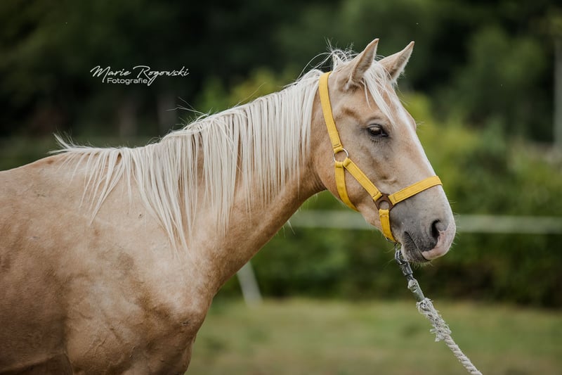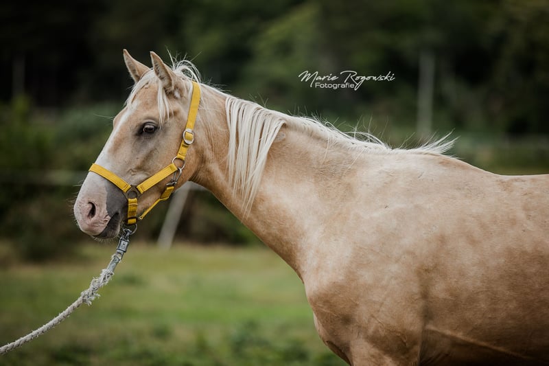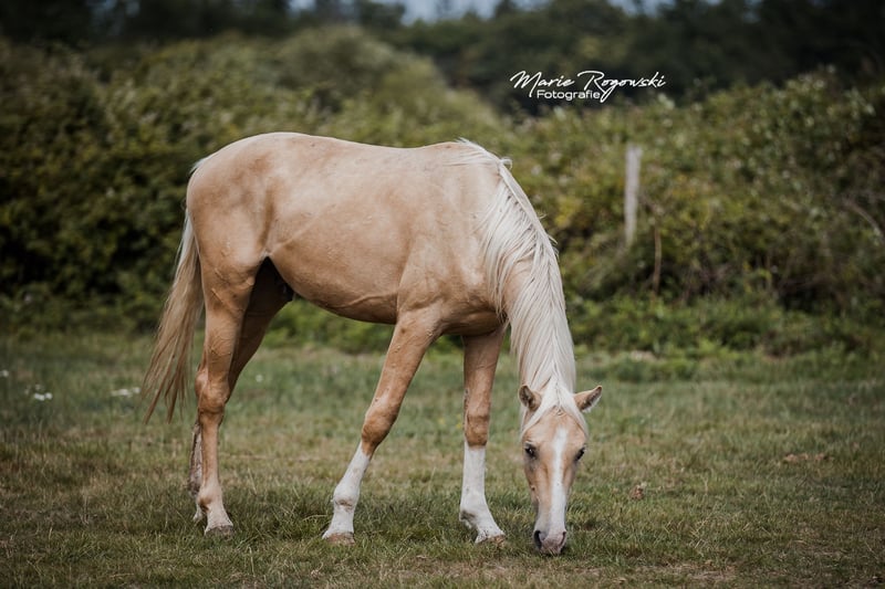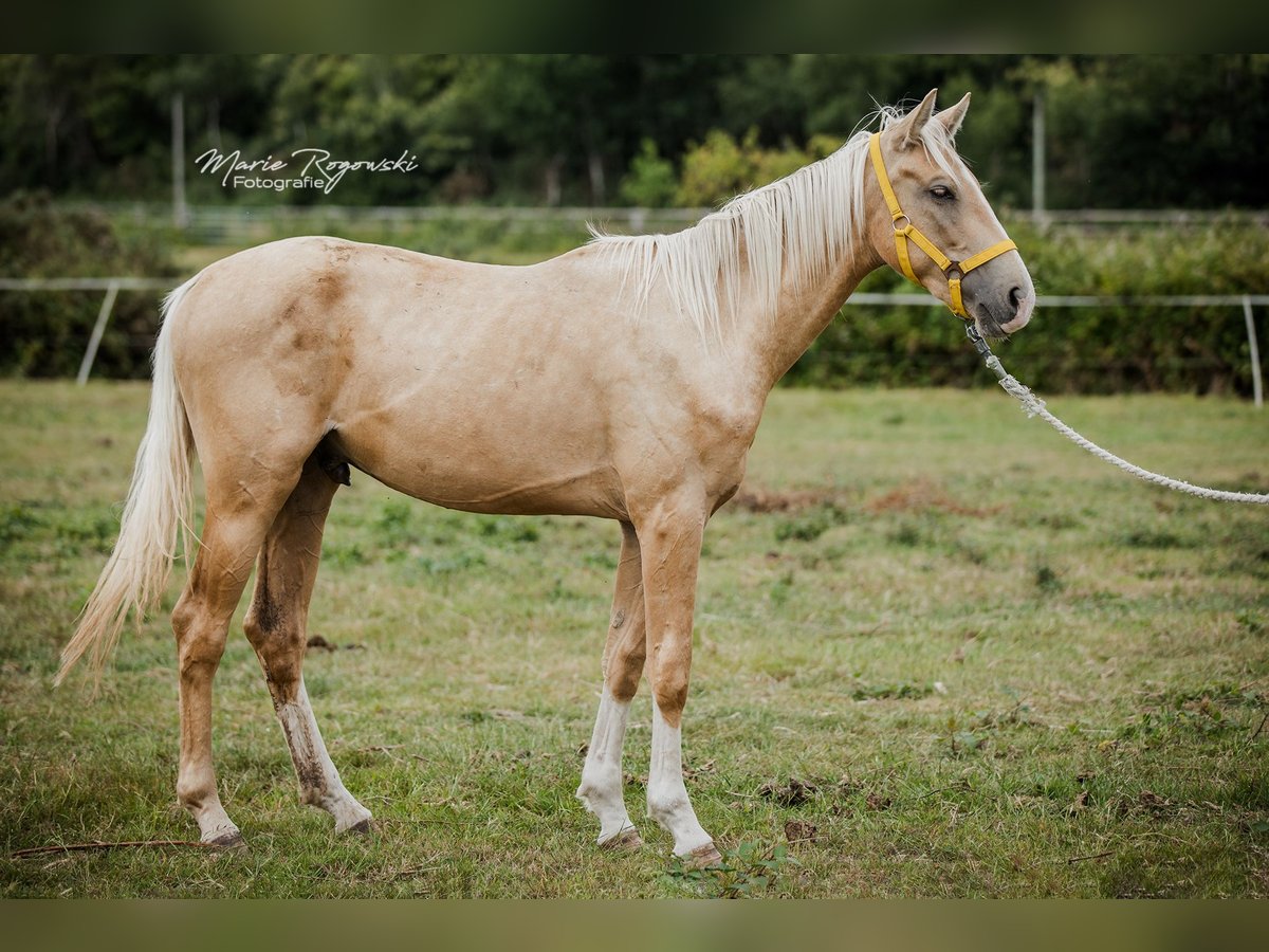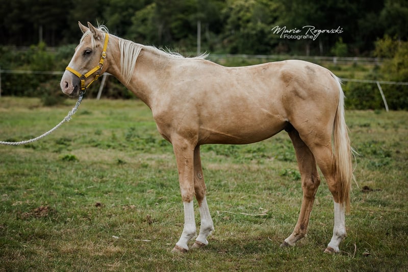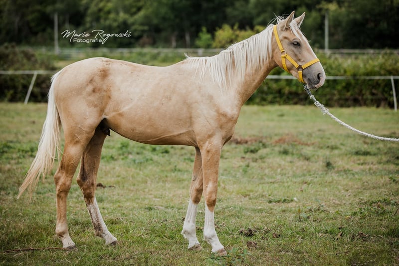 Warmblood stallion in palomino (heterozygous cream) | born 2023 | currently growing Zangersheide main studbook + IFCE (Facteur Selle Français) Genetics: e/e, agouti not tested, CR/n Castration possible on request Character & suitability: WALL STREET Z is a young, attentive stallion with a clear presence and calm nature. He is growing up in a mixed-age group of young stallions, knows daily contact with people and is familiar with basic procedures. He will however certainly need a few more basic lessons before training. Pedigree: Sire: WHITE WINE GF - large-framed Cremello warmblood stallion out of WEISSGOLD GF × BLONDER HANS, dressage-oriented with good scope at the jump as well, gentle nature Dam: DIVA - registered in Hanover, studbook I in Westphalia & Oldenburg, out of Dancier × World Cup I Proven pedigree with a focus on dressage and many years of targeted breeding planning for type, foundation and rideability. Miscellaneous: WALL STREET Z is registered in the Zangersheide main book and is also registered with the IFCE. Castration can be arranged if required. Visits are possible, accommodation is available. If you are interested or have any questions, we look forward to talking to you personally. We are happy to provide photos and additional information.