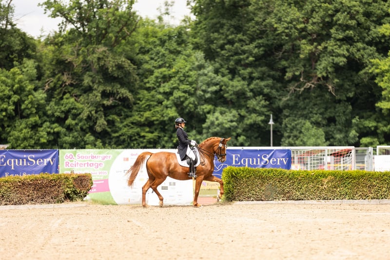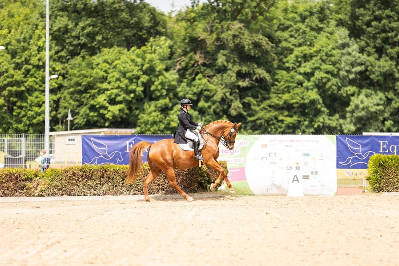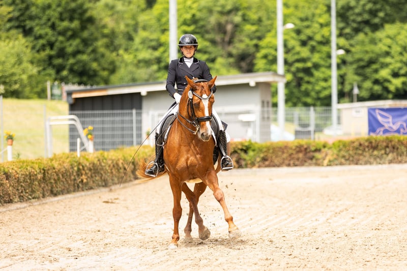 S-Dressage Mare with Excellent Character for Sale Available for purchase is a stunning and highly talented mare, which has already competed up to S-Dressage level and has achieved wins in class M. Additionally, she has placings in A-level show jumping and demonstrates great enthusiasm and ability over fences. Training & Achievements: - Competed up to S-Dressage - Multiple placings in class M - Placed in A-level show jumping - Very motivated and eager to perform Character: The mare is incredibly gentle, affectionate, and people-oriented in her handling. She is very easy to manage on a daily basis and makes training and riding a true pleasure. She enjoys jumping greatly and approaches it with lots of motivation. Trail Riding: She also behaves excellently and reliably in the terrain. Breeding: She is also well-suited as a broodmare. She has already had a foal and proved to be a loving and caring mother. Handling her foal was always smooth and calm. Currently, she is being worked and presented again in S-Dressage.