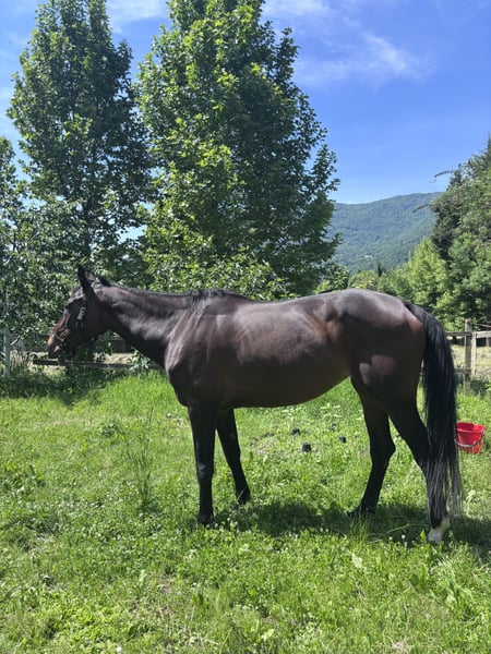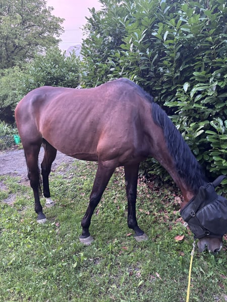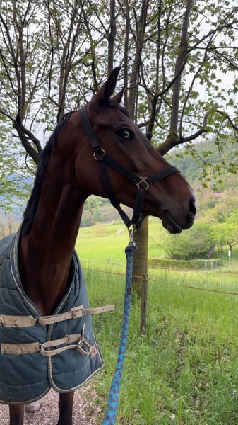 Clara ist 12 Jahre alt. Sie ist sehr lieb und im Umgang unerschrocken. In Italien hat sie an Springturnieren bis zu einer Höhe von 1,35 m teilgenommen, ist jedoch beim Reiten sehr gestresst. Daher möchte ich sie als Zuchtstute verkaufen. Sie hat bereits zwei Fohlen in ihrem Leben gehabt.