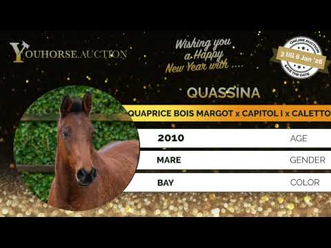 Quassina Z is offered as a broodmare and is a mare with clear blood and light-footed athleticism. She jumps with scope, shows a strong take-off and clearly jumps upwards. In movement she demonstrates very good mechanics: a loose, spacious trot and a canter with powerful push from behind. A mare with true sport presence and functionality. Sire Quaprice Bois Margot (Quidam de Revel x Wella I) competed at 1.60m level and is a proven international top sire. His offspring include Quintin (1.70m), Sangria du Coty (1.65m) and VDL Groep Quatro (1.65m). This sire line is known for scope, technique and mentality. Dam N-Cassina (Capitol I) is a Bezirksprämie mare and forms an exceptionally strong link in this pedigree. From this direct damline come numerous international showjumpers such as S-Cassina (Quick Star, 1.45m CSI5*), Cuba VA(1.40m CSI), Asqui Z (1.45m), Diamant del Colle (1.40m CSI), Vendôme d’Ick (1.60m CSI5*), Atomic Z (1.60m), Big Dream DK Z (1.40m), Quintago VA (1.55m CSI), Quintago I (1.60m), Chip VA (1.50m), as well as several approved stallions. The further damline traces back through Wisma (Caletto II) and Prisma to classic Holsteiner performance families, with an exceptional concentration of horses competing at 1.40m to 1.60m level, including multiple approved stallions. Quassina Z combines athletic scope, quality movement and an outstanding damline. A broodmare for breeders aiming to produce quality, scope and top-sport genetics.