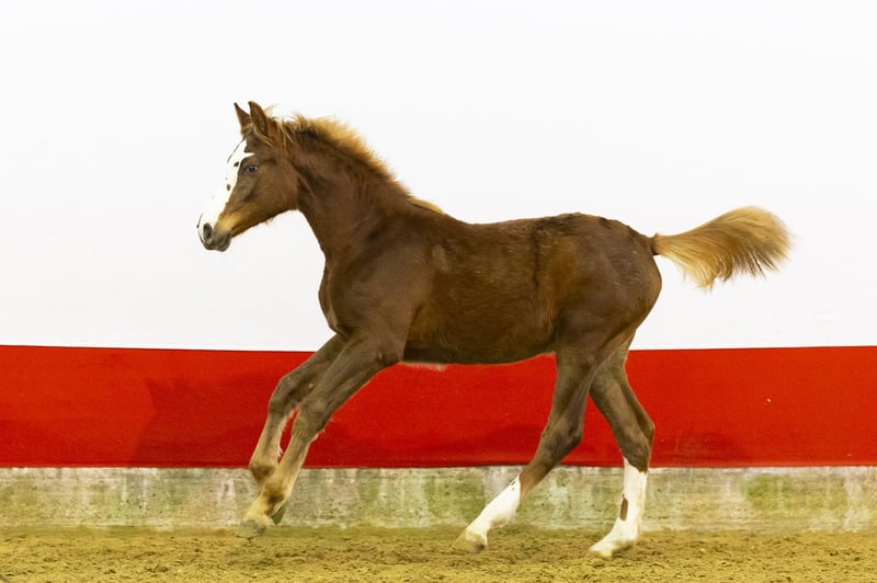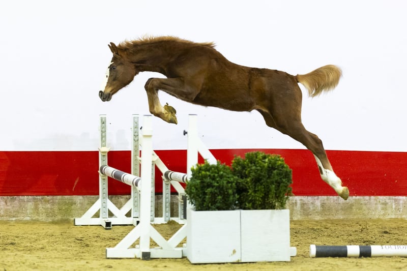 Auffälliger Jahrling mit viel Präsenz. Springt mit kräftigem Abdruck und zeigt eine enorme „Go“-Leistung in ihrer Bewegung. Ein echtes Kraftpaket voller Energie und Stärke. Mit ihrer blonden Mähne und Schweif verleiht sie dem Ganzen einen zusätzlichen Charme. Ein Pferd, in das man sich verlieben kann, und voller vielversprechender Zukunftsaussichten. Züchter Uranus van ’t Zorgvliet (1,20 m Niveau) ist BWP-approbiert und ein Sohn von Emerald van ’t Ruytershof (1,60 m Grand Prix, BWP-Botschafter und in KWPN, Holstein, BWP, Oldenburg und anderen Verbänden anerkannt). Emerald gehört zu den weltweit führenden Produzenten von 1,60 m Springpferden. Die Mutter Cover Girl Z (von Centurio, 1,50 m) stammt ab von Sunny Side Up 111 Z (von Spartacus TN, 1,60 m). Diese Familie brachte Joe Dimaggio 111 Z (1,40 m), Camila 111 (1,60 m CSI5* mit Platzierungen in Calgary und den USA) sowie Dillen 111 Z (1,45 m, Sieger bei CSI4* Vejer) hervor. Weiter in der Mutterlinie finden sich Califa 111 Z (1,30 m) und Girlpower 111 (von Darco). Eine leistungsstarke Familienspur mit Ergebnissen zwischen 1,45 m und 1,60 m in der direkten Linie.