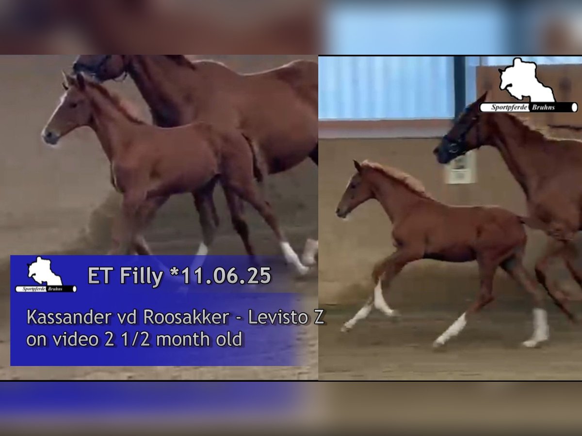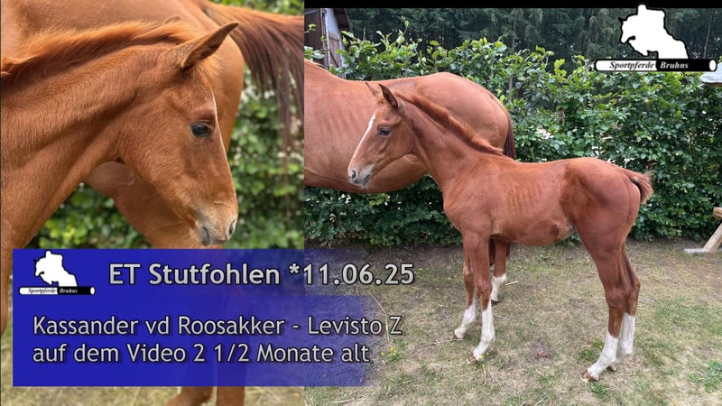 Oferujemy tutaj prawdopodobnie ostatnią klacz źrebaka naszej najlepszej klaczy hodowlanej Lene. Córka Lene "Call me Princess" odnosiła sukcesy na poziomie 1,60 m (S*****) i dwukrotnie startowała pod turecką flagą na Mistrzostwach Europy. Wnuczka Lene "Great Princess" odnosiła sukcesy na poziomie 1,55 m i brała udział w mistrzostwach Niemiec oraz zawodach Pucharu Świata w skokach. Ponadto, z tej udanej linii matczynej wywodzi się jeszcze kilka koni S (na poziomie 1,40 m i wyżej). Ojciec źrebaka, Kassander van de Roosakker, sam odnosił sukcesy na arenie międzynarodowej i jest znany jako udany reproduktor w hodowli koni skokowych. Sam źrebak, jak można zauważyć na materiałach zdjęciowych i wideo, jest bardzo atletycznym i typowym źrebakiem klaczy, na którego przyszłość czekamy z niecierpliwością. Zgodnie z genetyką, już widać w nim szczególny talent do skoków.