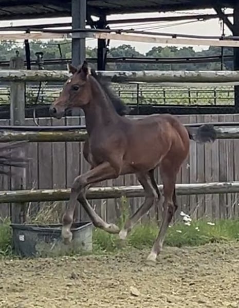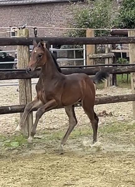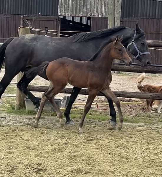 Born on June 21, 2025, Corali is a young mare with a solid foundation. Equipped with a hindquarters like a Quarter Horse, she will not lack in strength. Her father, Cote d'Or Z, has successfully jumped over 1.55m, followed by Carambole and Diamond's Billy, both of whom have jumped over 1.60m, and so on. On the maternal side, not much needs to be said: Diarado and Carthago, as well as the grandmother Pur Lady, have all made a mark in show jumping. A beautiful and promising mare is growing up here.