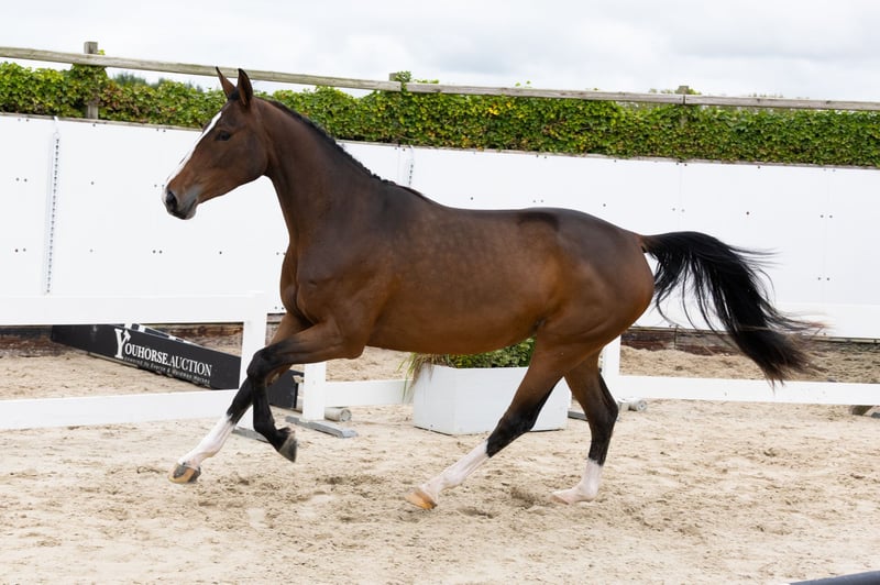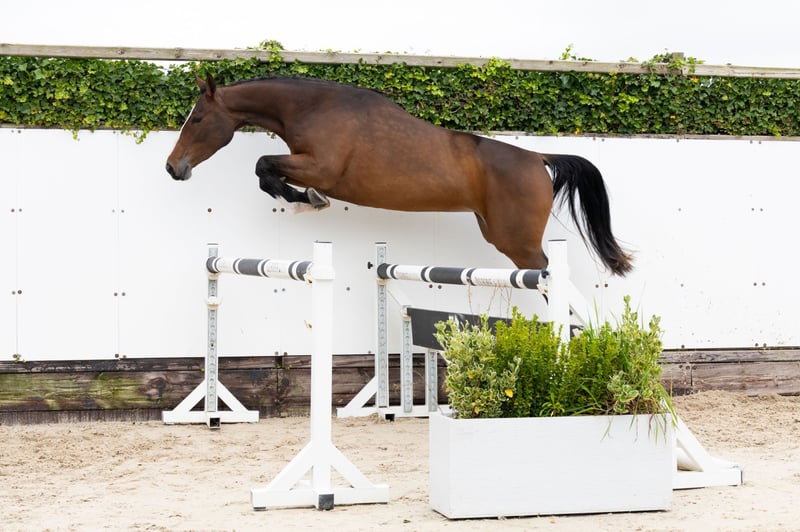 Who wouldn’t be a fan of top sire Kashmir Van Schuttershof? And this is also a mare with bloodlines. Exactly the type you want. The three-year-old Keymanthina SR Z jumps with good technique and ease. Kashmir Van Schuttershof performed at the highest level for many years himself and has produced numerous championship horses, such as H&M All-in and Gazelle. Mother Rustina vd Zandhoeve JW de Moerhoeve is a half-sister to two 1.40-1.45m show jumpers and three younger horses competing at 1.20-1.25m. She descends from Plot Blue x Tinka’s Boy. Great-grandmother is the well-known Diamanthina van ’t Ruytershof, a 1.60m Grand Prix mare and dam of approved stallions Le Blue Diamond van ’t Ruytershof (1.70m GP), Herald van ’t Ruytershof (1.60m GP), and Kentucky van ’t Ruytershof (1.55m GP). Diamanthina is recognized as the full sister of the Olympic stallion and top sire Emerald van ’t Ruytershof, and half-sister to three 1.60m-1.70m GP horses.