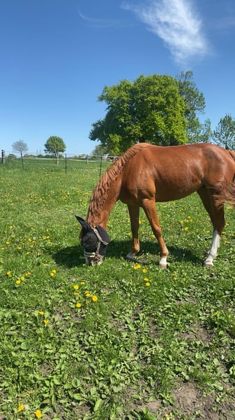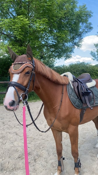 - Well-handled, familiar with walk, trot, canter, and pole work / small jumps in the terrain - Loads calmly and is shoe-friendly - Good-natured in handling (grooming, tacking, bridling, leading, lunging, etc.) - Calm and reliable in the field / on rides - Also rideable without a saddle - 4 years old - Started over fences with good pedigree