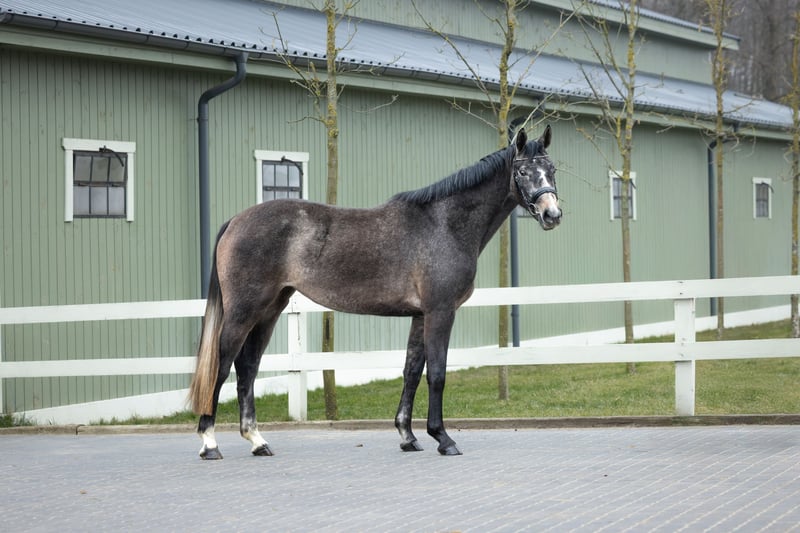 Gray daughter of the prematurely deceased stallion Conthargos – a great star of Paul Schockemoehle's stallion station. Despite having a career only in the young horse category, this stallion proved to be a very good sire, passing on not only high and versatile utility values to his offspring but also great beauty and nobility. He represents the line of the stallion Cor de la Bryere. Conthielle's dam comes from the previously discussed Kerly mare family and is a daughter of the stallion Malito de Reve from Joris de Brabander's stallion collection. This stallion competed at the 140 cm level, and his extensive use in breeding was determined by his lineage from World Champion stallion Cumano (Jos Lansink). Cumano, very substantial yet with a high blood percentage, achieved an incredibly high percentage of offspring competing at the highest level relative to his total progeny.
