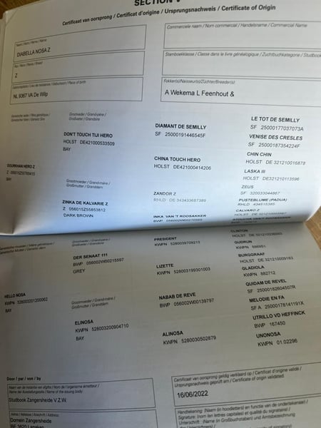 🌟 3.5-year-old Zangersheide mare with exceptional jumping talent and elite bloodlines Dourkhan Hero Z - Don’t Touch Tiji Hero x Hello Nosa – from Der Senaat 111 Meet "Diabella Nosa Z" – a special 3.5-year-old mare with impressive jumping ability and excellent conformation. She is completely healthy, unridden, and ready to start her career from scratch. Her movements are elastic, expressive, and elegant – providing the perfect foundation for a successful sporting future. 📖 Pedigree – World-class show jumping bloodlines: • Sire: Dourkhan Hero Z – out of the renowned Don’t Touch Tiji Hero, maternal line includes Zinka de Kalvarie Z – both internationally proven show jumpers. • Dam: Hello Nosa – by Der Senaat 111, with the granddam Elinosa, a daughter of the legendary Nabab de Rêve – one of the most influential sires in modern show jumping. ➡️ This pedigree combines the most recognized international show jumping bloodlines, offering an outstanding foundation for both a successful sport career and breeding. 🐴 Key features: • Age: 3.5 years • Breed: Zangersheide • Color: Brown • Movement: elastic, powerful, balanced • Jumping: exceptional natural talent and technique • Health: 100% sound, free of issues • Training: unridden, easy to handle, intelligent & quick learner 💡 Recommendation: Diabella Nosa Z is the ideal choice for riders or breeders seeking an intelligent, talented, and well-bred mare – with the potential to compete at the highest level or pass on excellent genetics to the next generation. If you are interested in this outstanding top mare, please contact me with your phone number so I can get in touch with you as soon as possible.