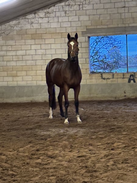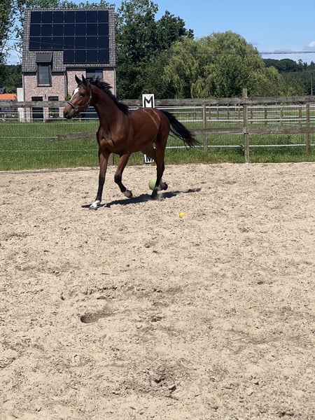 Handsome 3-year-old show jumping mare (Emerald x Randel Z). The horse is easy to handle. Not yet saddle-trained, so still fully adaptable to her rider's preferences. The mare has been inspected via RX and is completely healthy and sound. Re-inspection is always possible at the owner's convenience. She has jumped in free jumping sessions twice and has shown promising potential! For more information, please feel free to contact us at any time.