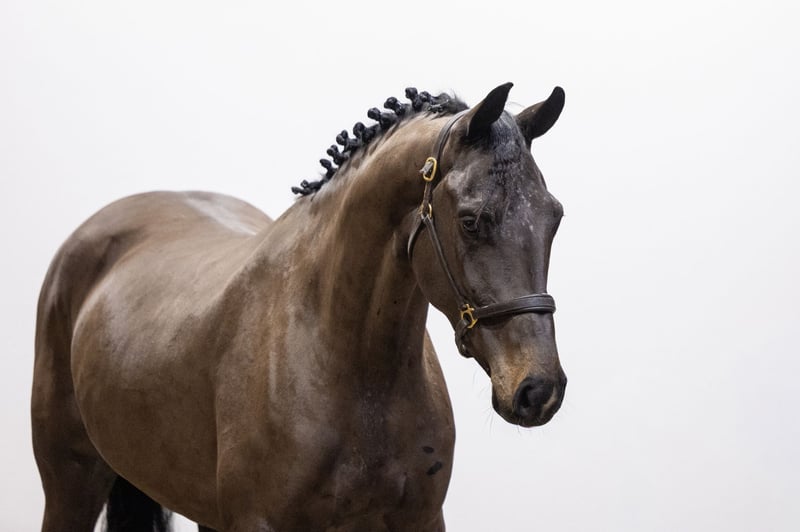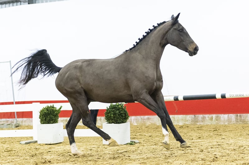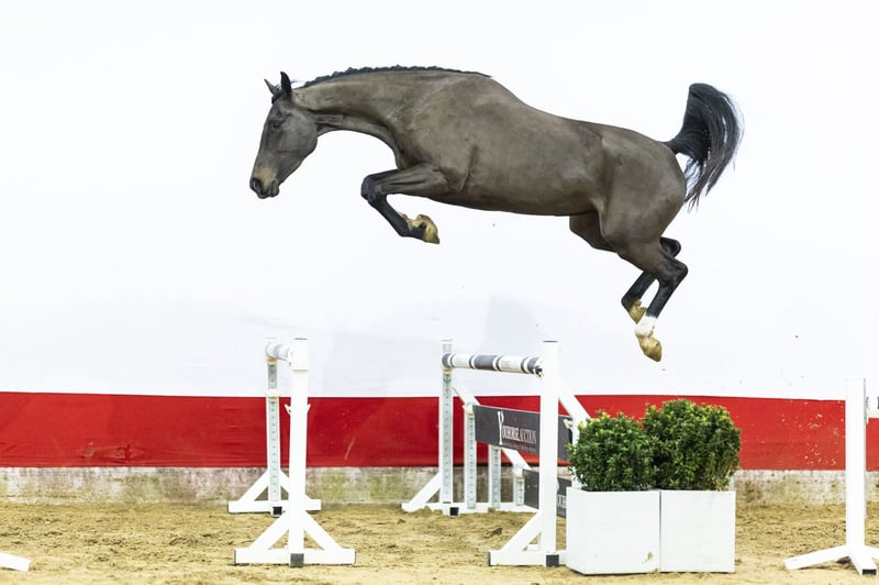 An imposing horse with presence. If you are looking for push-off and carefulness, this is an interesting option. Nicely uphill built and athletic in appearance. She jumps with scope, shows carefulness and a strong front-end technique. Her canter is big and balanced, with scope and rhythm.