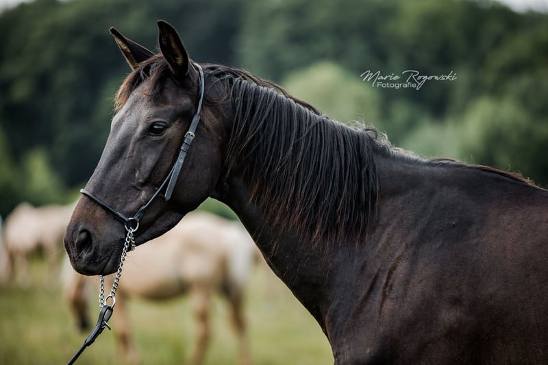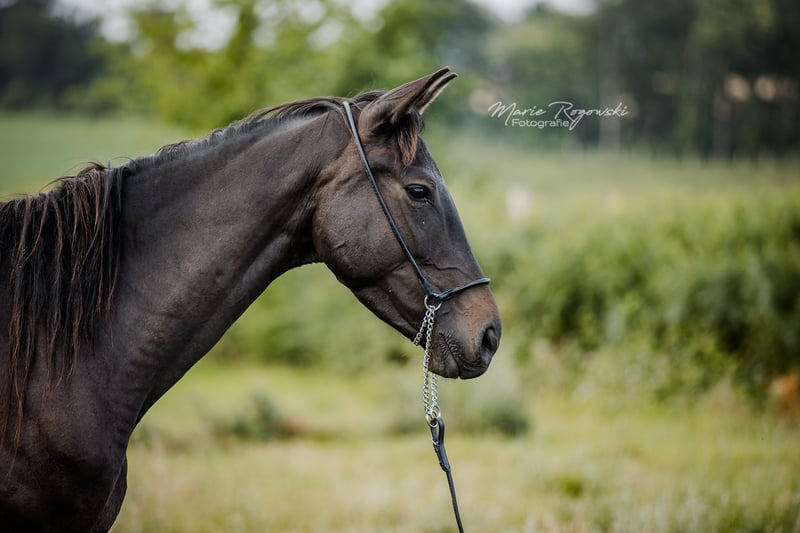 Mare | Zangersheide | Dark bay | born 2020 MIDNIGHT Z is an elegant, large-framed young mare with an expressive, clearly defined head and strikingly good movement. Her trot is particularly impressive with its momentum and elasticity. She is friendly, curious and uncomplicated in her handling. Her sire Mykonos combines modern dressage bloodlines via Millennium and the world-famous Desperados FRH, who was ranked number 1 in the world for dressage horses in 2016. Her dam Funny Girl is one of the few warmblood broodmares with a secure dun gene and produces athletic riding horses with rare colour genetics.