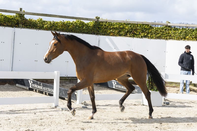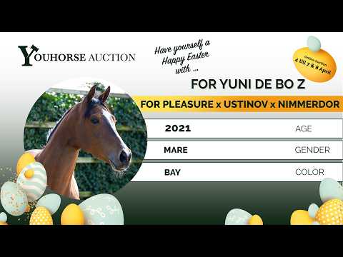 For Yuni de Bo Z is een paard met een zeer mooi model en een sterk silhouet. Hij valt op door zijn uitstraling en lijkt te beschikken over makkelijk vermogen. Op de sprong doet hij goed zijn best en laat hij een goede manier zien. Hij beweegt zeer lichtvoetig en makkelijk, met een goede draf en een galop die mooi naar boven galoppeert. Een paard dat veel balans en souplesse toont en daardoor later zeer prettig te rijden zal zijn. Dit paard is inmiddels zadelmak, nog niet zo lang, maar laat al een goede instelling zien onder het zadel. Een video onder het zadel zal nog volgen. Naar onze mening een zeer interessant en compleet paard met kwaliteit en toekomst. Vader For Pleasure sprong op 1.60m niveau en behoort tot de absolute legendes in de springsport, met talloze nakomelingen op het hoogste niveau. Moeder Uyuni Z is een dochter van Ustinov (1.50m) en brengt opnieuw vermogen en rijdbaarheid in de lijn. De moederlijn is bijzonder sterk met veel sport op niveau: Hello Forever – 1.60m, winnaar op 5* niveau Cherry Pop – 1.60m No Limit – 1.45m O’Malley van de Bucxtale – 1.50m Inola – 1.40m Een stam met bewezen prestaties tot op het hoogste niveau.
