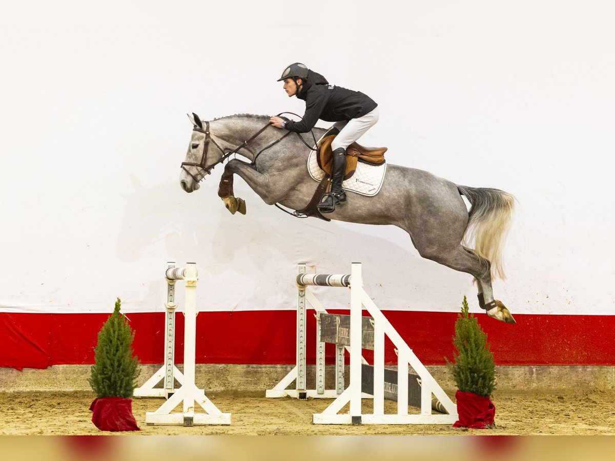 Esmeralda Z is a very modernly bred mare who has only recently started under saddle, yet already shows an impressively complete picture. She comes from the highly successful Escape Z line, proven at top level sport and successful under Harrie Smolders. Her pedigree is reflected clearly in her athleticism and jumping style. Esmeralda Z is remarkably easy to ride for her age. She is light-footed, simple to handle and gives the rider an immediate positive feeling. She jumps with a lot of natural activity, is quick off the ground and shows a good technique with the withers coming nicely towards the rider. Her jump finish is balanced and she appears careful. Her sharpness feels positive and fits a horse with quality. She has already completed one 80 cm course, but her way of jumping clearly shows much more potential. Thanks to her good mentality and rideability, she is interesting for an amateur rider, but certainly also for a professional looking for a young, commercial horse with quality. Sire Escape Z (Emerald van ’t Ruytershof x Heartbreaker) competed at 1.55m level and achieved top results at CSI5* level, including a second place in Amsterdam and strong performances in Rotterdam and ’s-Hertogenbosch. Escape Z combines the scope and mentality of Emerald van ’t Ruytershof (1.60m) with the reflexes and blood of Heartbreaker. His offspring include Escape The Gossip (1.40m), Elegance Z (1.40m) and Ecclestone Z (1.40m). Dam Evithya (Diarado x Diamant de Semilly) competed herself at 1.45m level and performed internationally in the USA. She combines the highly sought-after blood of Diarado (1.50m, Sieger stallion) with Diamant de Semilly (1.60m), guaranteeing scope, technique and mentality. Second dam Tilithya (Voltaire) is a proven sport and breeding mare. From this line come international showjumpers such as Zidane (1.50m), Benito (1.60m CSI5*), Cilienthya (1.40m), Nilienthya (1.30m), Gomez (1.45m) and Iniesta(1.30m), as well as approved stallions like Rocky SKN (NRPS) and Interest ET (KWPN approved). Third dam Bilithya produced an exceptional number of sport horses and approved stallions, including Kingston (KWPN approved), Ramazotti (ZfdP approved), Kapsone S (AES approved), Million (1.60m), Kafka (AES approved, 1.60m) and Vladimir (1.50m). This generation confirms the depth of this performance family. Fourth dam Silithya is the foundation of a damline with dozens of horses competing at 1.30m level and higher, including international performers and approved stallions across generations. Esmeralda Z combines modern top genetics, natural athleticism and excellent rideability. A very interesting young horse with quality, presence and a pedigree proven at the highest level.