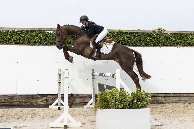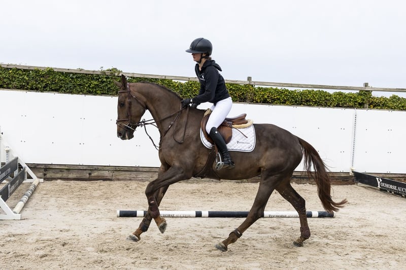 Recently under saddle and well-behaved. Shows a good attitude and has sufficient to a lot of blood. Jumps every jump in the same way. Suitable for multiple disciplines. Sire Bonaire 5 – 1.60m level. Known for passing on scope and attitude. Dam Celesta van Stappelvoorde – no sport record known. Damline Granddam Irene. From a strong line with multiple sport horses: First Devision – 1.60m, Africa Capital Fiston – 1.60m, Ulysse – 1.60m, Fidele – 1.50m, Wattman – 1.45m, Baly van Stappelvoorde – 1.45m and First Devision II R – 1.35m.