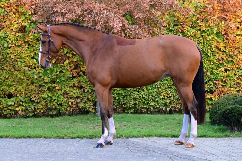 This Hailey DV Z mare is a daughter of none other than Heartbreaker, a legendary stallion who, despite his age, is still considered exceptionally modern and highly influential. His name continues to inspire admiration in both sport and breeding. On the dam’s side we find Lanzarote DV, a daughter of Emerald, and further down the line Kashmir van Schuttershof — two foundation stallions known worldwide for passing on scope, mentality, and top-level performance. This combination of proven quality sires makes Hailey DV Z genetically very appealing. Her appearance reflects this strong genetic foundation: Hailey DV Z has a modern, athletic type with a sporty elegance that immediately stands out. Under saddle — and especially over the jumps — her qualities shine through. She jumps with great awareness, is quick off the ground, and uses her body naturally and efficiently. What truly sets her apart is her mentality. She always cooperates, remains focused, and stays remarkably consistent even as the jumps get bigger. As the height increases, she continues to give her all, showing even more power and never letting her rider down. This makes her not only a quality horse, but also a competitive one at every level. For anyone looking to start with a horse that combines potential, blood, scope, and a golden character, Hailey DV Z is the perfect match. In the case of direct export to non-EU countries, VAT is no longer applicable (21% becomes 0%). If the export is delayed (but happens as soon as possible), the VAT will be refunded after we have received the official export document (which is drawn up by customs).