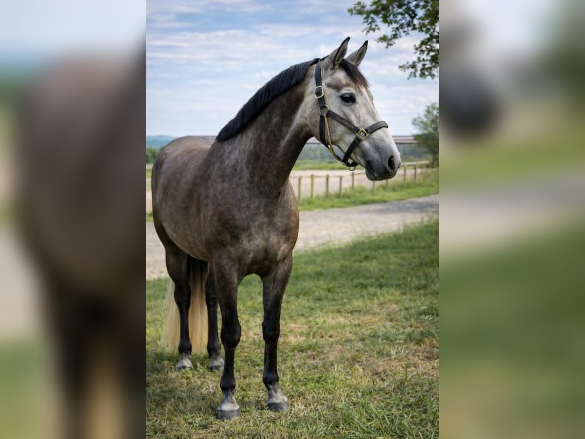Stute von 4 Jahren – 1,64 m – Abstammung KWPN x Lusitaner Mon Excellence Z trägt ihren Namen zu Recht: elegant, vielversprechend und mit einem außergewöhnlichen Charakter ausgestattet, vereint diese junge Stute die Kraft eines wettbewerbsfähigen Vaters und die Bewegungsqualität einer prestigeträchtigen Mutterlinie. Vater: Mundo (PSL) – bis zur Klasse Saint-Georges erfolgreich, wurde er Europameister im Working Equitation und gibt seiner Nachzucht einen soliden Charakter, Leistungsbereitschaft und echten Willen zur Performance. Mutter: Zistrona (KWPN, braun) von Rhodium x Ferro – aus Zuchtlinien, die für ihre Kraft, Flexibilität und die Qualität ihrer Bewegungen bekannt sind. Für ihren allerersten Wettkampf, im Hôpital Le Grand, zeigte Mon Excellence Z ihr ganzes Potenzial. Trotz ihres jungen Alters musste sie in anspruchsvollen Prüfungen für eine 4-Jährige antreten (da keine Kategorie „junge Pferde“ angeboten wurde), unter dem Sattel eines professionellen Reiters. Mit großer Reife und viel Großzügigkeit meisterte sie die Herausforderung mit Bravour. Sie hat von ihrem Vater die Verantwortung für den Sieg geerbt und von ihrer Mutter eine ausdrucksstarke und harmonische Bewegung. Ihre geschwungenen Linien und ihre Seitengänge zeichnen sich bereits flüssig ab, unterstützt von einem traumhaften Charakter. Stärken Nur 4 Jahre alt, aber bereits eine schöne Leichtigkeit im Wettkampf Bemerkenswerter Charakter, ruhig und willensstark Prestigeträchtige Linien: Mundo (PSL), Rhodium und Ferro (KWPN) Geschmeidige Bewegungen, ausdrucksstarke und vielversprechende Locomotion Aufgezogen und ausgebildet von ihrer Züchterin Mon Excellence Z ist eine Stute mit Zukunft, bereit sich weiterzuentwickeln für einen Reiter, der ein vielversprechendes junges Pferd mit solider Genetik und seltenem Charakter sucht.