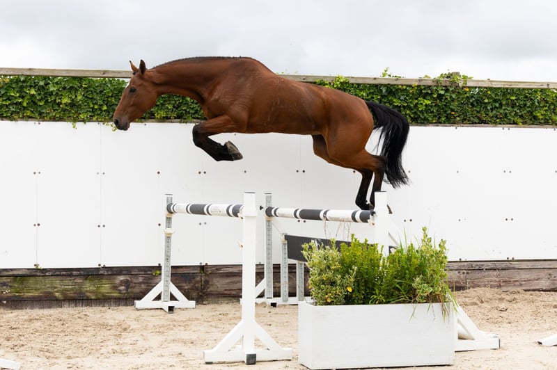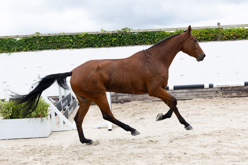 Kassa vd.d. Zietfort Z is a five-year-old mare with a long-lined build, an easy trot and canter, plenty of scope, and a good temperament. She is saddle trained. Her sire, King Pleasure B (1.45m show jumping), comes from the lineage of Olympic team gold medalist Vindicat W and is closely related to several successful Grand Prix horses. Her dam, Fem-Atoil (Calvino Z), has competed in 1.30m show jumping courses. Her first offspring is the ten-year-old Kwik One (international 1.45m show jumper with Bart van der Maat, now competing at 1.40m level with Lucrezia Maria Nicola from Italy). Granddam, A’Etoile (Indorado x Goodtimes), also produced Gracia (1.40m show jumping). She is a half-sister to the 1.50m jumping horses Elietro vd Berghoeve and Ilvido, as well as two other horses at 1.40m to 1.45m level.