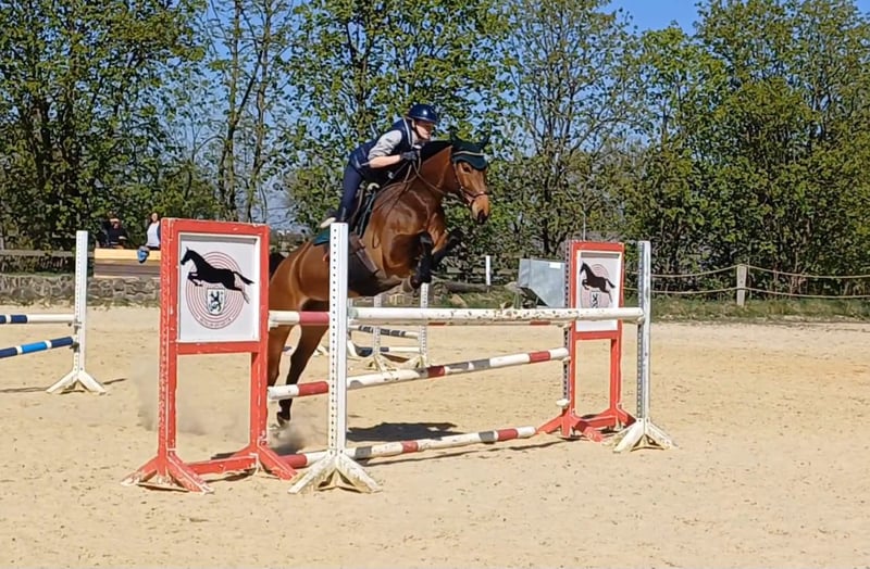 Zum Verkauf steht eine tolle 6-jährige Stute mit viel Qualität und Vermögen am Sprung. A-Springen platziert, Peelbergen mehrfach fehlerfrei gesprungen. Sie wurde immer von einem Kind geritten, dieses ist jedoch aufgrund des kommenden Schulabschlusses und eines weiteren Pferdes in einer Situation, wo es der Stute zeitlich nicht mehr gerecht wird. Sie wird in fördernde Hände verkauft und ist kein reines Kinder- oder Anfängerpferd. Kein Steigen oder sonstige Unarten. Für weitere Informationen bitte ich um eine Nachricht oder einen Anruf unter 0178-1892928.