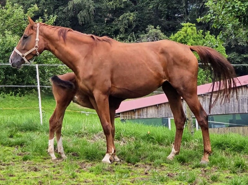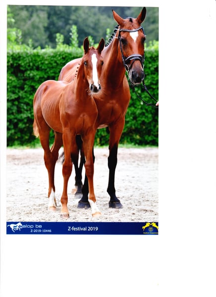 Stute mit guten GGA , Talent und Übersicht am Sprung von Copycat ( Comilfo Plus Z x Caretano Z ) x Chacco Blue Aktuelle Röntgenbilder vorhanden Copina belegte den 9.Platz beim Festival in Lanaken (Zangersheide ) . Sie hatte letztes Jahr ein Fohlen von Aberdeen Z stand nach dem absetzen noch mal auf der Wiese und ist jetzt in professionellem Beritt. Inzwischen ist sie Turnier gelaufen ,beendete die Prüfungen immer ohne Fehler und ist in springpferde Prüfungen platziert . Ihre dreiviertel Schwester ( von COMILFO PLUS Z ) wurde über die Zangersheider Quality Auktion an einen renovierten Springstall in Hickstead versteigert . Dort wurde sie ausgebildet und 7 jährig über die Auktion von S.Breen nach Belgien verkauft . Inzwischen ist sie international auf 145 cm Niveau platziert Der Halbbruder von Copina von Querido VZ aus 2021 wurde über die Zangersh Breeders nach Schweden Verkauft . Er ist inzwischen unter dem Sattel und zeigt auch viel Vermögen. Weitere Videos auf Anfrage !!!