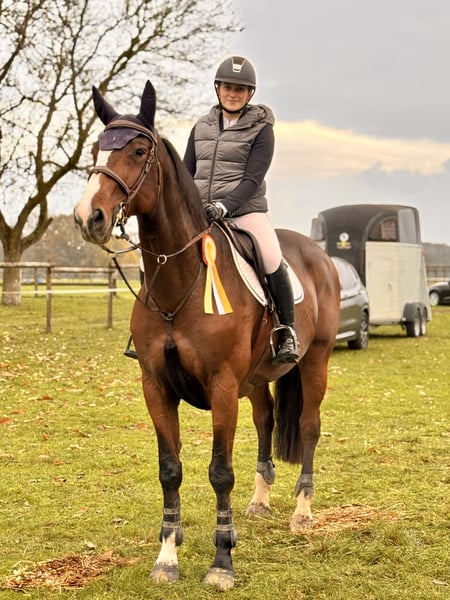 For sale is a 7-year-old, 16.1 hh, well-behaved mare. (D‘Aganix 2000 Z x Acorado I) Dikira is a kind, alert mare with a natural “go” attitude. She is well-mannered and nicely trained in handling. She always wants to do everything correctly and prefers to jump on the other side of the obstacle. At competitions, she remains calm and has already placed up to 110 cm, with clear rounds up to 120 cm. Although Dikira is quite “robust,” we would still describe her as an “amateur” or “girl’s horse.” She is always well-behaved in the arena, out on the cross-country course, or in the outdoor paddock. Current videos are available upon request. Dikira is regularly vaccinated, dewormed, and farrier- and loading-friendly. Test riding is not an option. A fee of €20 applies for trial rides. Inquiries only via WhatsApp or by phone at: +49 1522 8810407