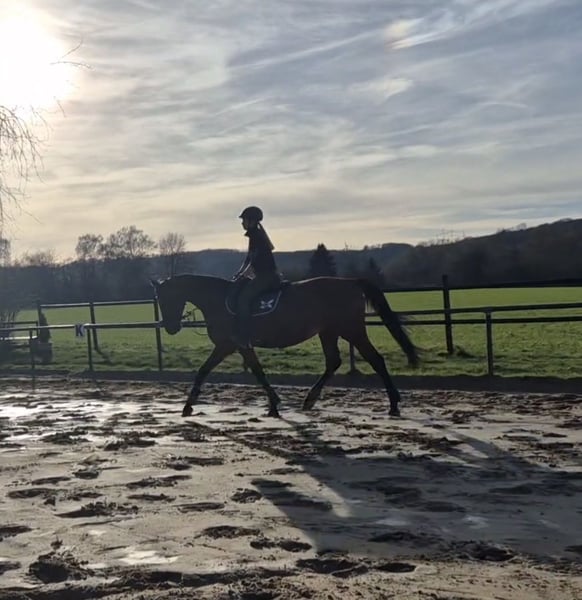 Hallo, mein Name ist Zora. Ich bin eine 9 jährige Zangersheide Stute (Action Breaker x Quintender) und auf der Suche nach einem neuen zu Hause. Ich wurde 4 jährig angeritten, wurde aber in den letzten Jahren als Zuchstute eingesetzt. Seit September werde ich nun wieder voll geritten. Die tägliche Arbeit unter dem Reiter oder an der Longe bereitet mir sehr viel Freude. Hierbei zeige ich mich stehts motiviert und möchte meine Aufgabe immer erfüllen. Meine Reiterin sagt, dass ich mich in den letzten Monaten toll entwickelt habe. Allerdings sollte das Springen noch nicht im Vordergrund stehen, da ich hier noch sehr übereifrig bin. Mit der Zeit werde ich das sicherlich auch noch meistern. Das dressurmäßige Reiten sowie Stangenarbeit beherrsche ich bereits sehr gut. Da es in meinem derzeitigen Stall keine Halle gibt, werde ich ausschließlich draußen auf dem Reitplatz gearbeitet. Ich kenne also jegliche Witterungsbedingungen sowie Flutlicht. Natürlich bin ich schmiede und verladefromm. ⭐️ Im Auftrag eines Züchters zu verkaufen ⭐️ tolles, braves und absolut ehrliches Pferd. Ideal als Damen oder Umsteigerpferd (ca 1,62m groß) geeignet. Macht täglich Spaß und ist unkompliziert im Umgang. ⭐️nicht für reine Anfänger geeignet. Dressumäßig sollte man schon auf einem E-A Niveau reiten können. Sie steht sehr gut an den Hilfen, ist fein zu reiten und ist nicht triebig. Leicht in der Anlehnung zu reiten. ⭐️weitere Betreuung in Form von Unterstützung oder Korrekturreiten durch mich nach dem Kauf möglich. (Sofern das Pferd im Umkreis verkauft wird) ⭐️ Preis ist VHB Habe ich dein Interesse geweckt? Meine Reiterin kann dir sicherlich noch mehr über mich erzählen. Einfach anschreiben oder unter 0151-28778377 telefonisch melden.