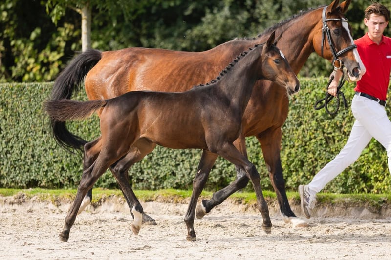 Puledro di El Barone III x Calvados Splendido puledro di colore castagno scuro, elegante, con un carattere dolce. È già abituato al morso e si muove tranquillamente al guinzaglio. Zolaniki ha gareggiato con la cavalla norvegese Celine Marie Foss, raggiungendo un risultato nazionale di 1,40 m e un livello internazionale di 1,35 m. Zolaniki proviene dalla rinomata linea Niki di H. Hartlief, nota per i suoi numerosi cavalli da salto internazionali e per diversi stalloni approvati. La cavalla madre Niki ha partorito, tra gli altri, il leggendario cavallo da Grand Prix di Nick Skelton, vincitore due volte del Grand Prix di Aquisgrana, e ha conquistato numerose medaglie ai campionati mondiali. Discendenti: Prima di iniziare la carriera da cavalla da lavoro, Zolaniki ha dato alla luce il stallone da Grand Prix approvato Don Diablo HX (v. Vittorio). In passato ha gareggiato con Michel Hendrix ai massimi livelli e ora lo fa con l’inglese Nick Benterman. Il puledro è nato il 10 luglio 2025 e potrà essere svezzato a partire dal 10 dicembre 2025.
