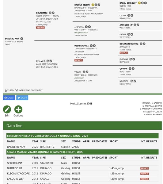 ovely Foal Slowly Starting to Look for a Future Home This sweet-natured foal is still happily out in the pasture with her mother, but be will be ready to move to her new home in the autumn. The filly is by Brunetti Z out of Deja Vu Z, a dam from one of our best maternal lines – combining quality, temperament, and performance pedigree. Contact: +370 654 80808