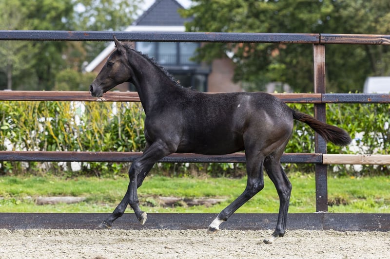 Het merrieveulen Athena heeft heel veel pluspunten. Ze is langgelijnd, heeft front, is lichtvoetig en heeft een actief gebruik van het achterbeen, waardoor ze heel makkelijk schakelt in beweging. Vader Aganix du Seigneur brak door op 1.60m niveau onder Jos Lansink, totdat hij geblesseerd raakte en volledig ingezet werd als dekhengst. Nakomelingen in de 1.60m Grand Prix zijn onder andere Agana van het Gerendal Z, Agadance van ’t Gelutt, Akarad Hero Z, Ayade Hero Z, Athletix Hero Z en Attoucha. Moeder Toboja Cortina stamt af van topvererver Cornet Obolensky uit een halfbloedmerrie. Deze Tobajo Blue Imini (Blue Talk xx) is een halfzus van de Grand Prix dressuurhengst Tobajo Picez, gereden door Helena Liholt Gulli (NOR), en nauw verwant aan het CCI4* eventingpaard Lavendel met Alice Andersen (SWE).