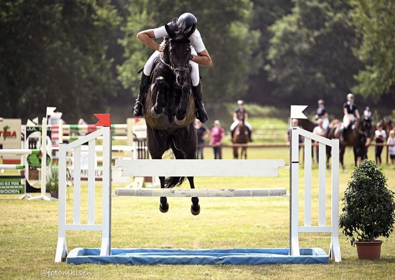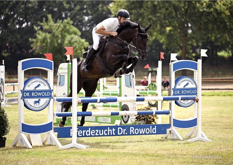 Athletically talented mare with potential for advanced show jumping For sale is a 13-year-old, 16.4 hh, unspoiled dark bay mare (Chacco Chacco x Lancaster) who was initially broken as a young horse and later used for breeding. Her competitive career is now her main focus. She already boasts multiple placings in jumping competitions at classes A and L and is currently in preparation for class M. Thanks to her talent and enjoyment of the sport, she is an ideal horse for ambitious riders who may even aim for the higher levels.