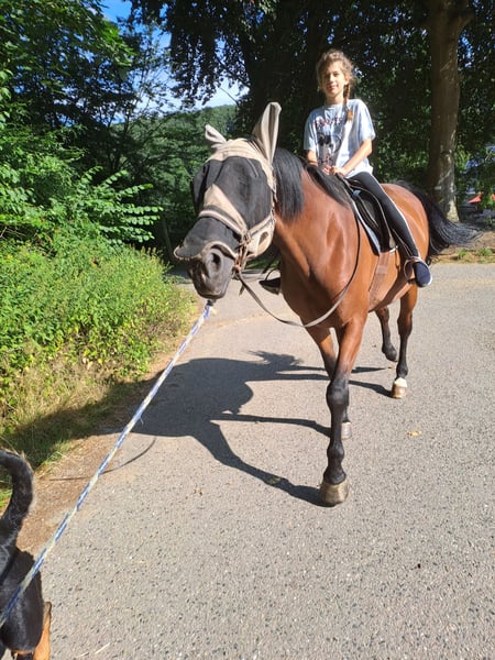 Kobyła była głównie użytkowana w terenie, czasami na ujeżdżalni lub na placu. Od urodzenia jest pod moją opieką, wychowana przeze mnie i również zaczęta pod siodłem. Jest trzymana na pastwisku otwartym, latem i zimą z dostępem do wybiegu. Z powodu braku czasu oddaję ją wyłącznie w dobre ręce, do doświadczonej jeźdźczyni lub jeźdźca. Oględziny możliwe są w każdej chwili po wcześniejszym telefonicznym umówieniu.