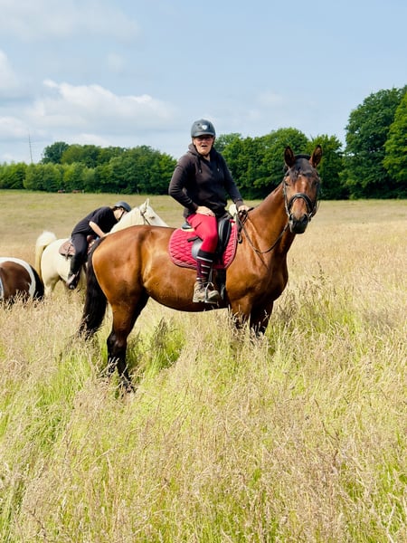 English I am selling my 17-year-old mare as I can no longer do her justice. She is an absolute lifesaver. Children or beginners can ride her without any problems. Absolutely well-behaved. Included in the price is her custom saddle, which is now 3 months old. She has a condition since she was 4 years old, but it does not bother her. She goes out alone as well as in a group. She is a bit rusty; she is trained up to M level in dressage.