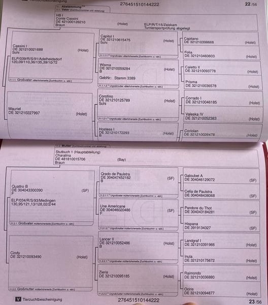 Cariani ist bei uns auf dem Hof geboren und als Fohlen im Offenstall, später in reiner Stutenherde (Sommer 24h Weide, Winter tagsüber Winterkoppel, nachts Box) gehalten worden. Sie kennt die regelmäßige Hufpflege, geführt und geputzt zu werden, Traktoren, Hühner, Katzen und Hunde. Sie wurde in der Halle vom Boden aus gearbeitet und kennt Kappzaum, Trense, Arbeit an Longe und Doppellonge, wurde ausgesackt und hat bisher einmal Erfahrung im Freispringen gesammelt. Beim Hängertraining ging sie ohne mit der Wimper zu zucken in den Hänger. Gefahren wurde sie allerdings noch nie. Momentan wird sie so langsam an den Sattel gewöhnt. Aktuell wird sie 1-2 x wöchentlich gearbeitet. Sie ist jetzt im richtigen Alter, um weiter Muskulatur aufzubauen und dann mit dem Anreiten zu starten. Dazu wäre es gut, wenn sie häufiger gearbeitet wird. Routine gibt ihr Sicherheit und lastet sie vom Kopf aus. Sie ist ein sehr menschenbezogenes Pferd, die auf Zuruf auf der Koppel zu einem kommt und immer gerne mitgeht. Sie ist verschmust und arbeitet immer motiviert mit. Bei Neuem ist sie zu Beginn unsicher, legt die Unsicherheit aber bei einer ruhigen und konsequenten Führung schnell ab. Die Mutterstute steht ebenfalls bei uns auf dem Hof. Weitere Fragen beantworten wir gerne telefonisch oder per E-Mail.