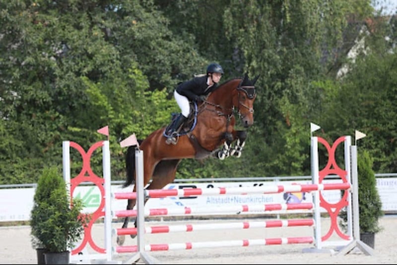 Violett was backed at the end of her 4-year-old year and, at 5, was introduced to show jumping competitions in classes A and L. She managed to place as high as 3rd with scores up to 8.2 in L-level show jumping. She then had two foals. Since early November, she has been back under saddle and is ready for her first jumps. As she is sensitive, she requires a confident rider. Current X-rays are available.